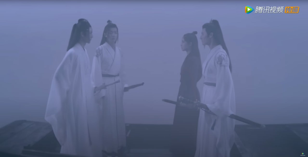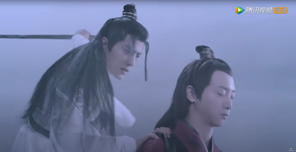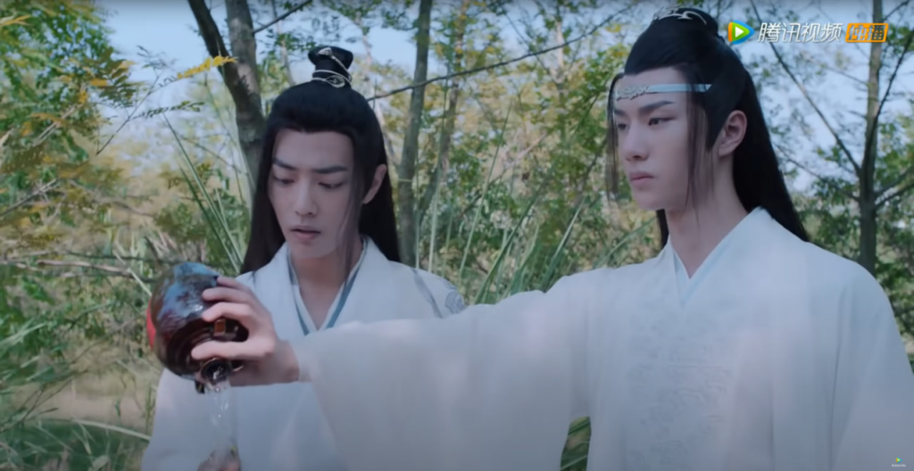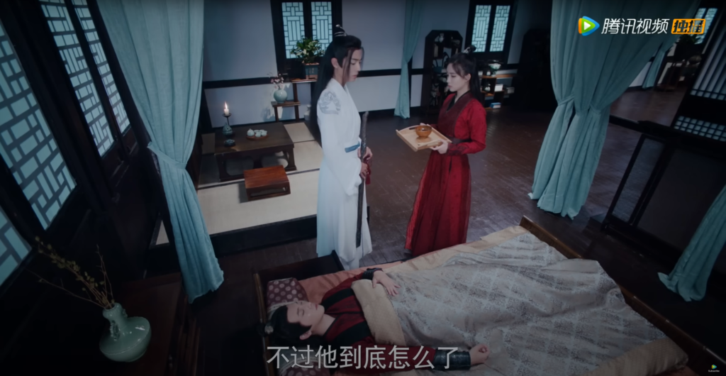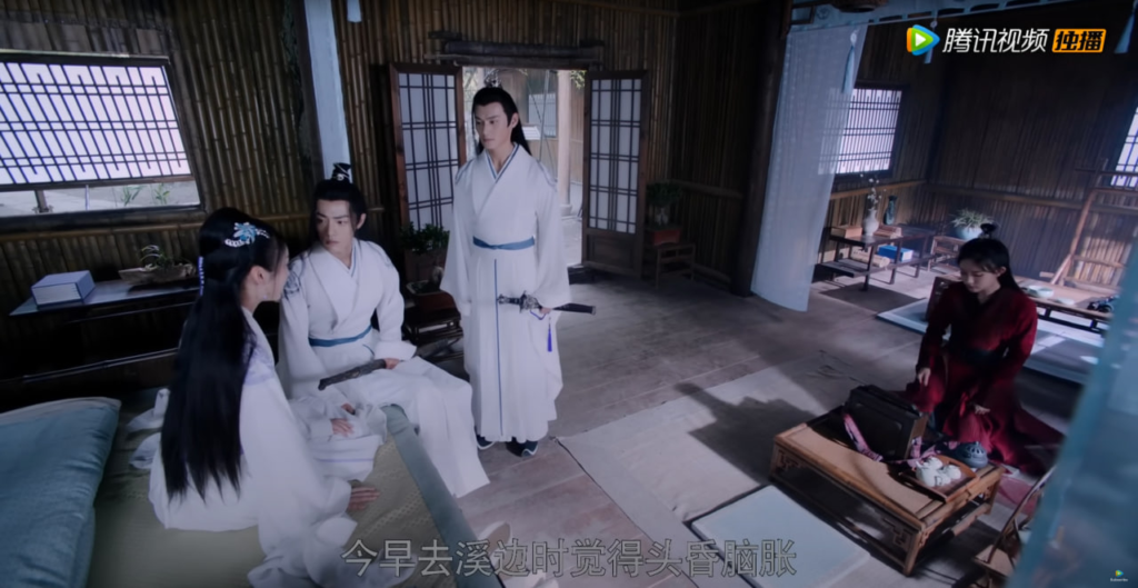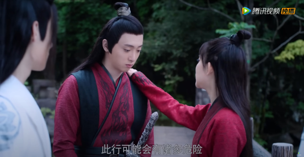 Нехи все больше буянят, Чэн немножко ранен и Цин его лечит (Чэн няшно смущается)
